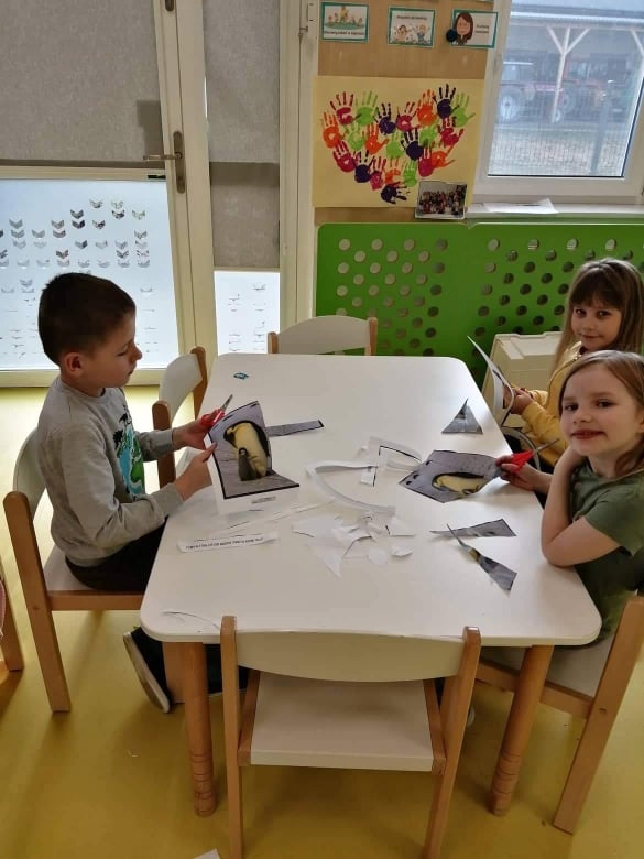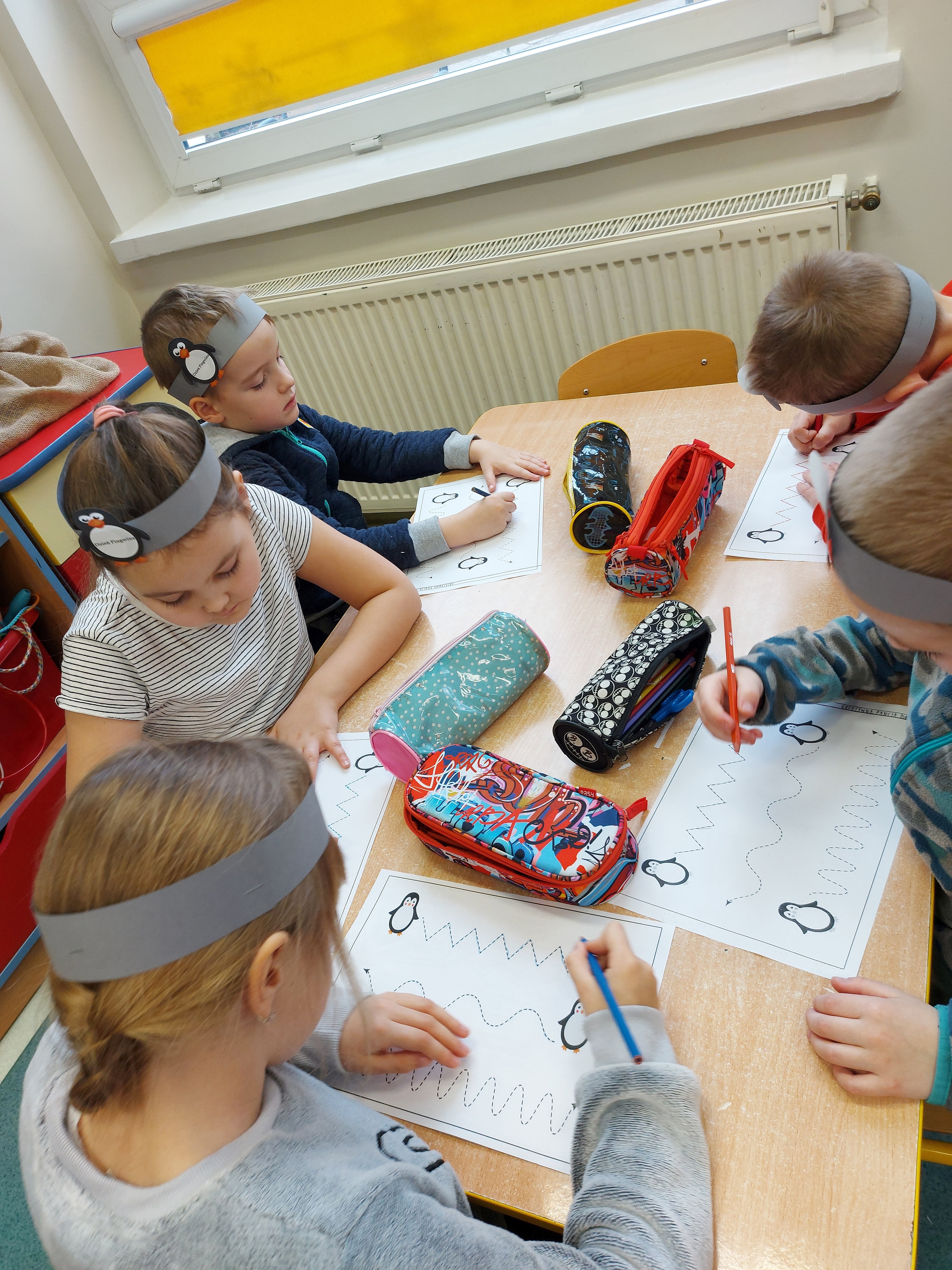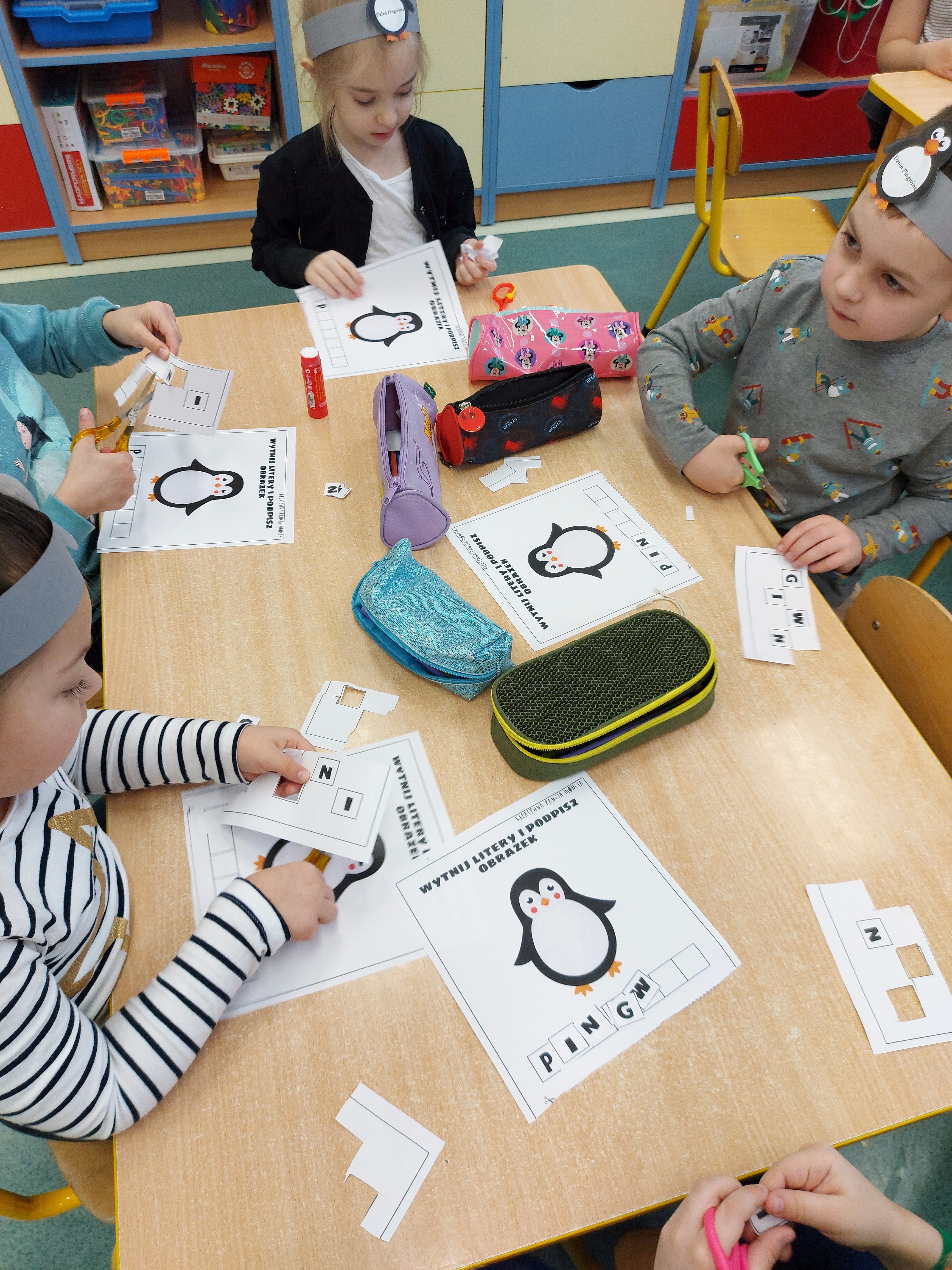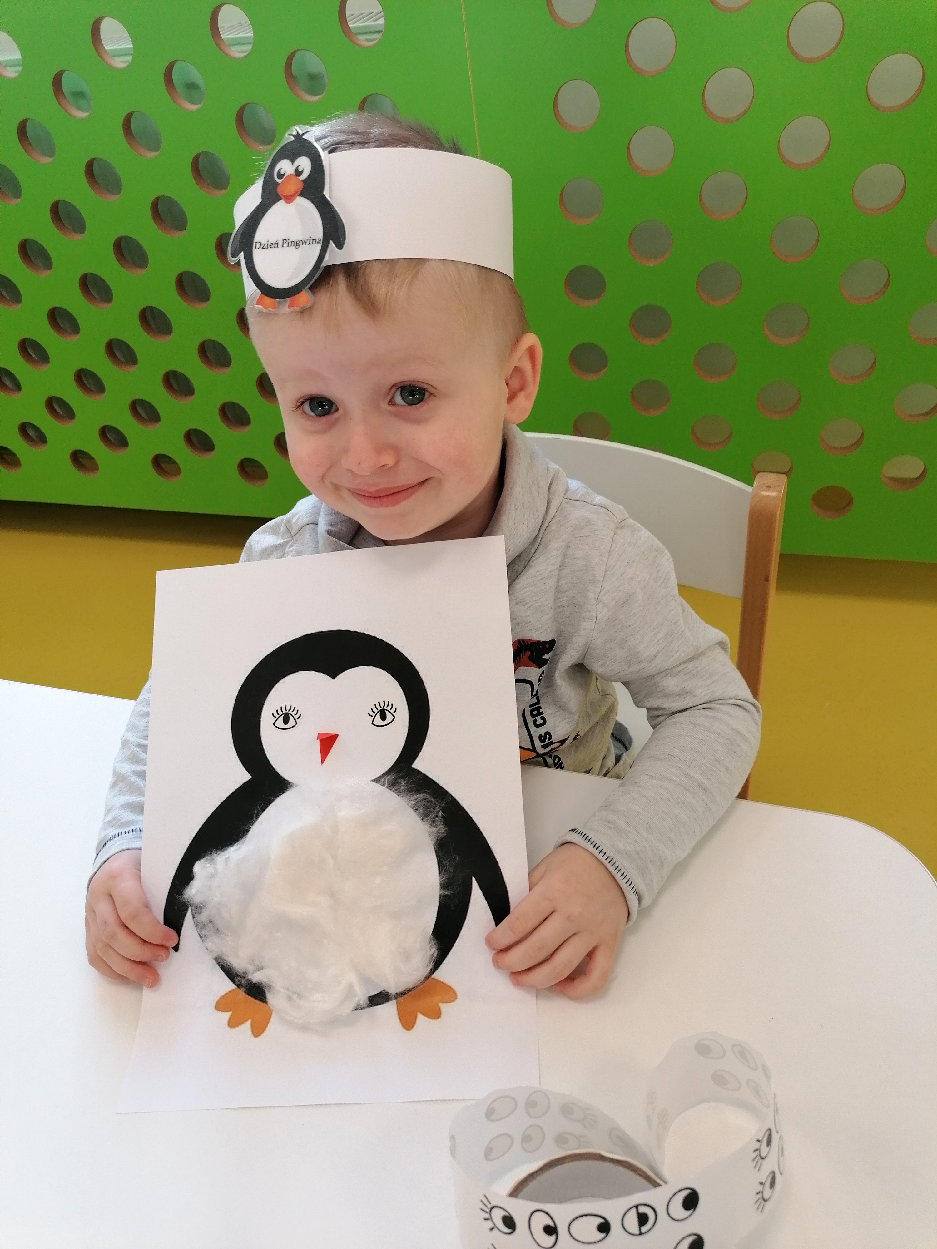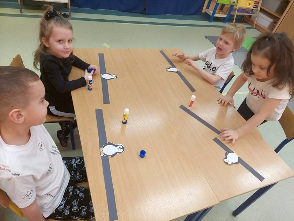 W kalendarzu to święto wypada 20 stycznia. Tego dnia dzieci w każdej grupie poznały zwyczaje i ciekawostki z życia tych sympatycznych zwierzaków. Rozwiązywały zadania matematyczne, szukały odpowiedniego cienia pingwinka, podpisywały ich postacie, szukały odpowiedniej drogi w labiryncie. Z uwagą obejrzały film, który przybliżył im życie niezwykłych ptaków zagrożonych wyginięciem. Na zakończenie dnia przedszkolaki wykonały piękne prace plastyczne przedstawiające różne gatunki tych nielotów żyjących na półkuli południowej. Dużo radości wszystkim sprawił pingwini taniec.