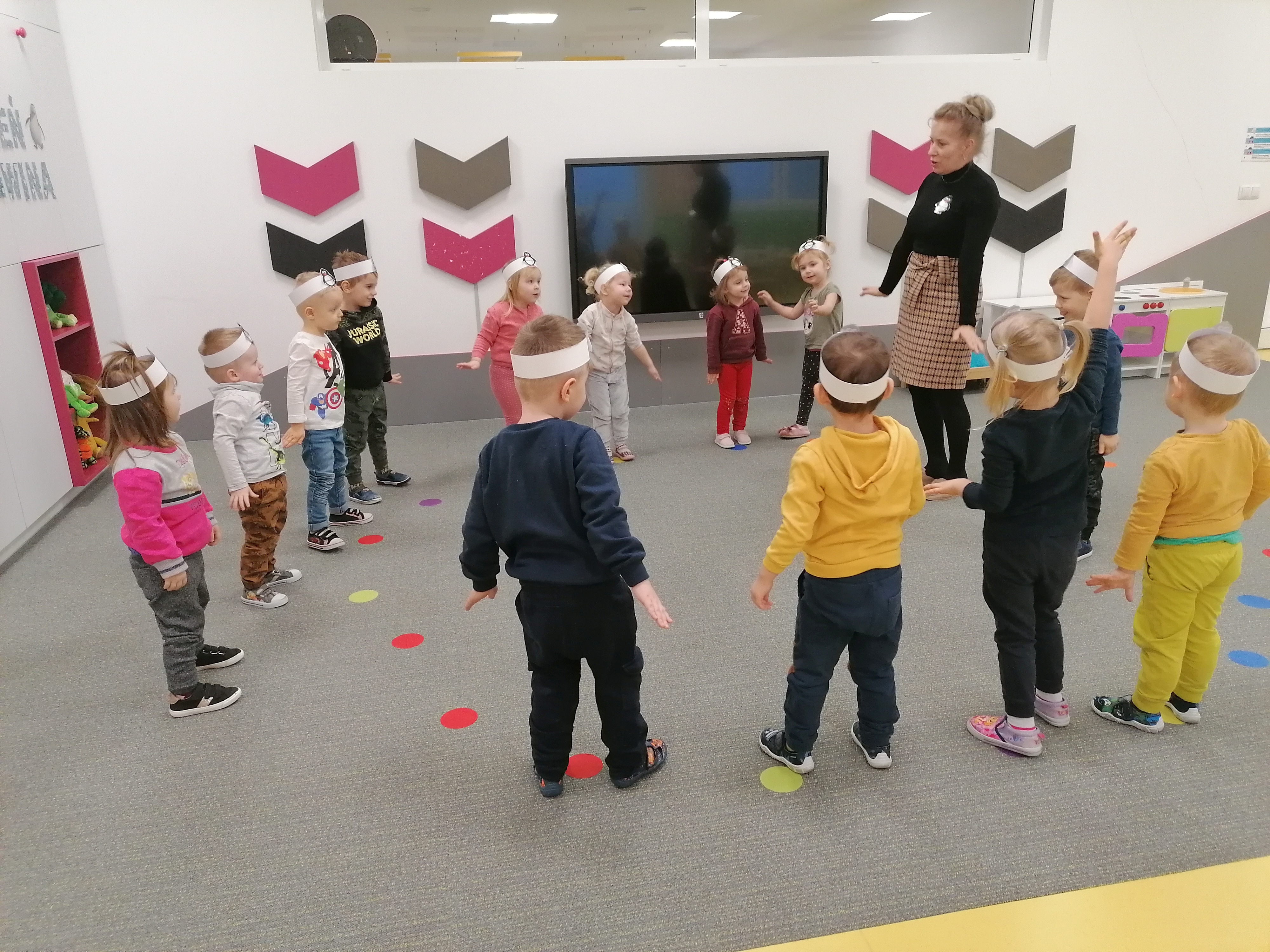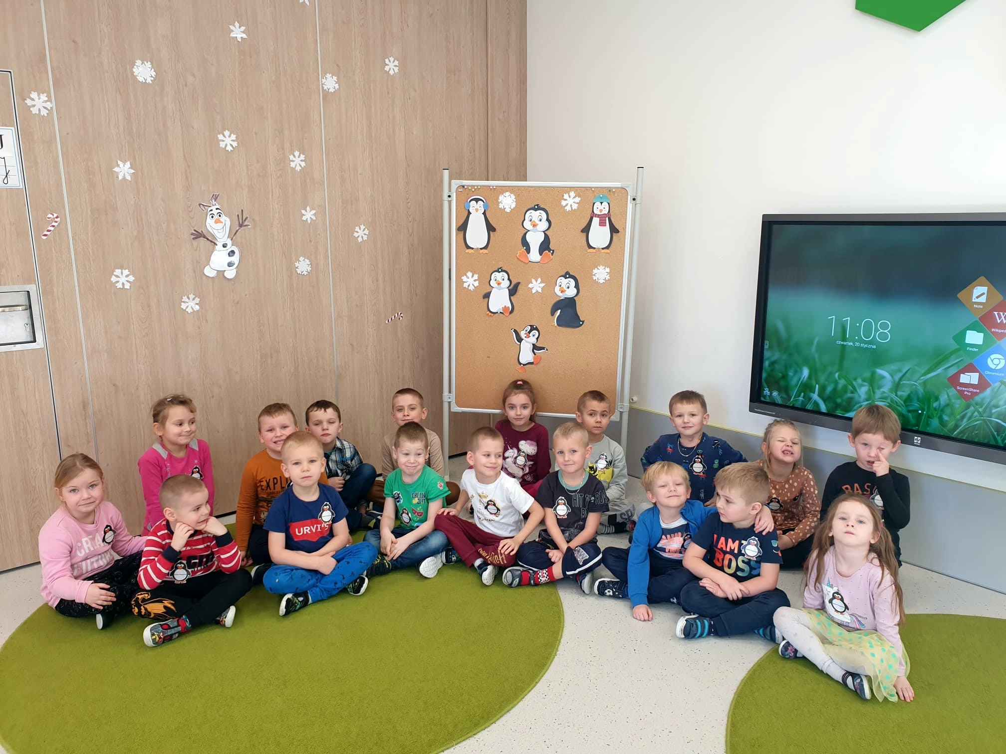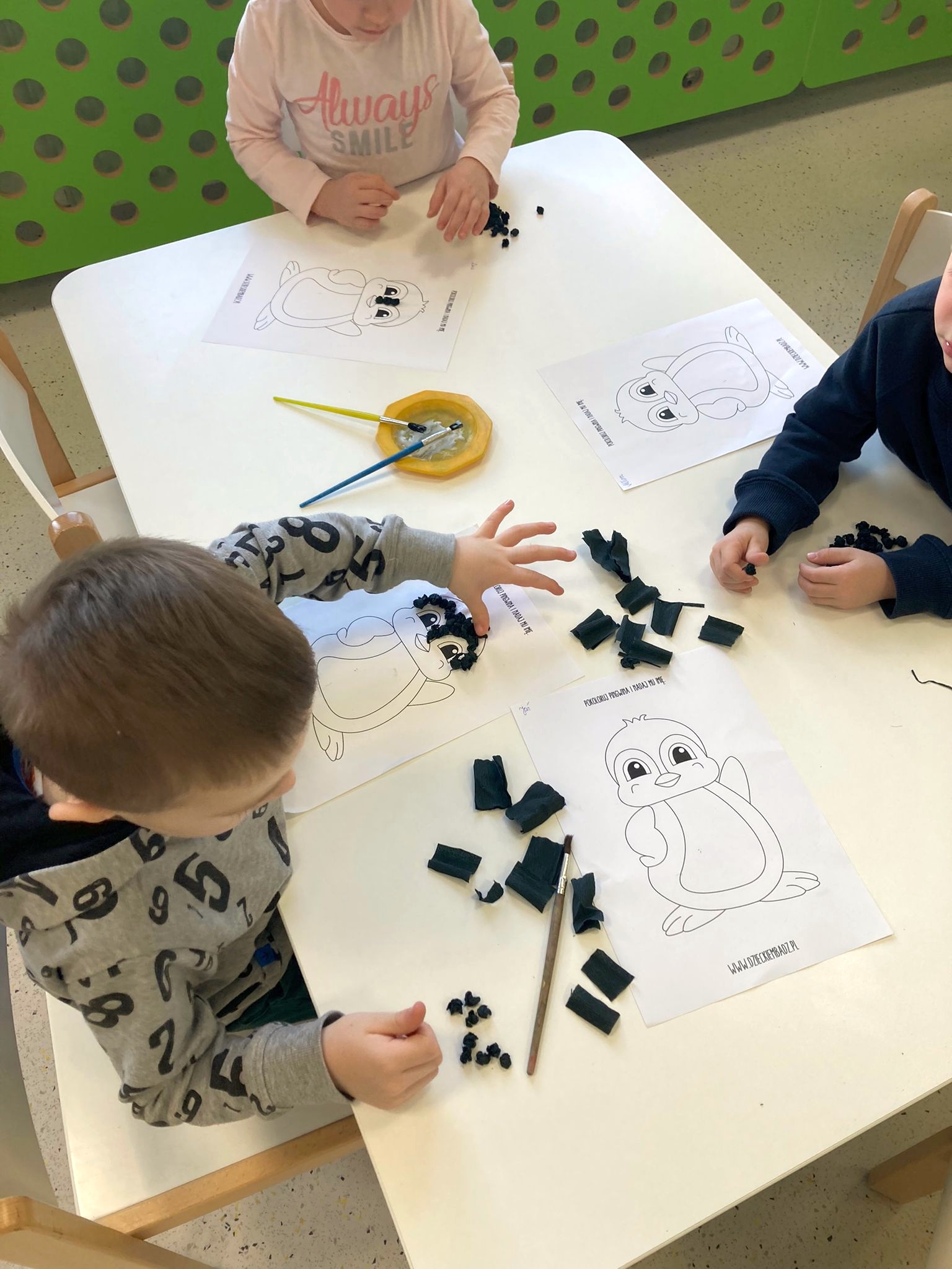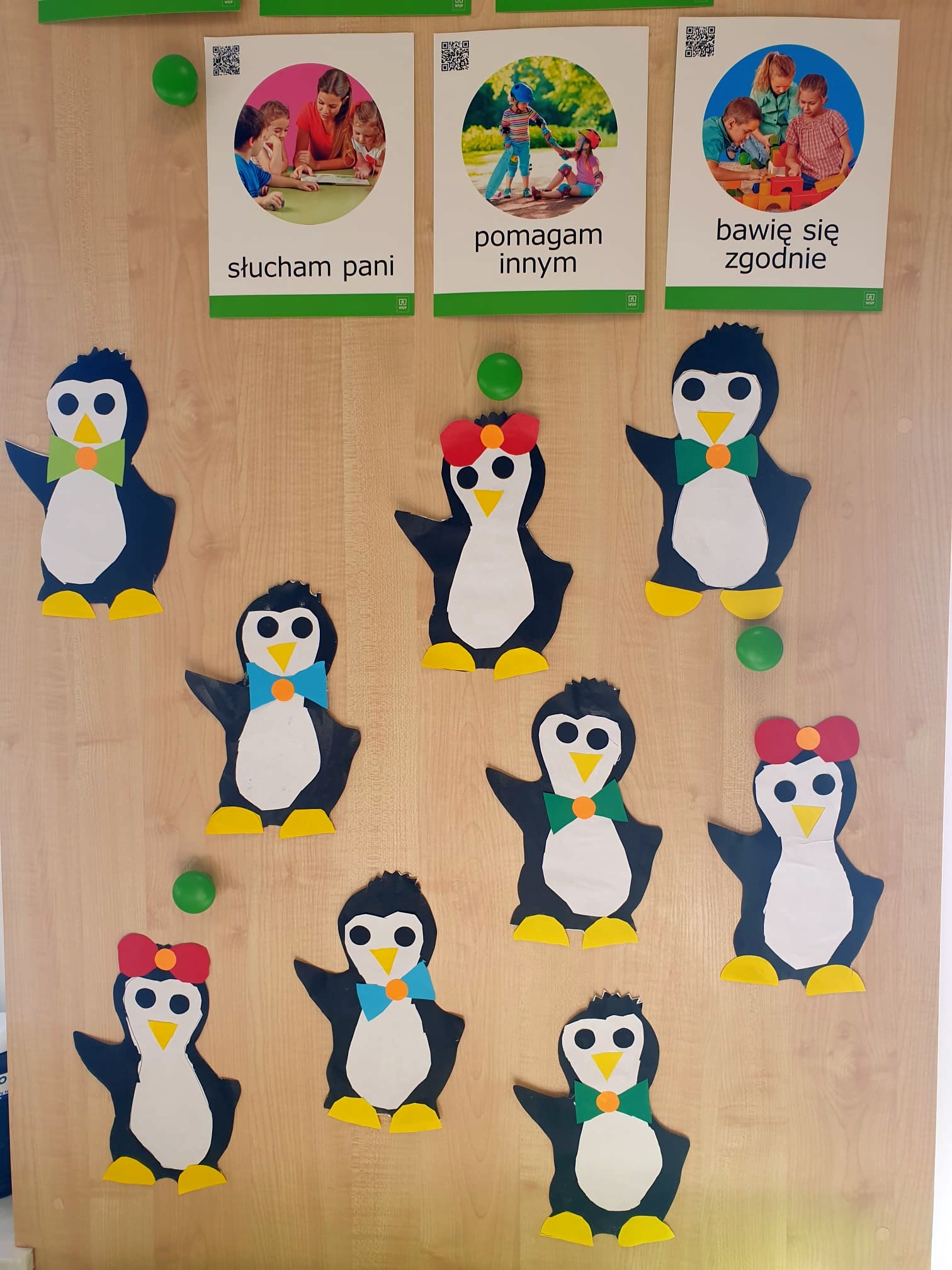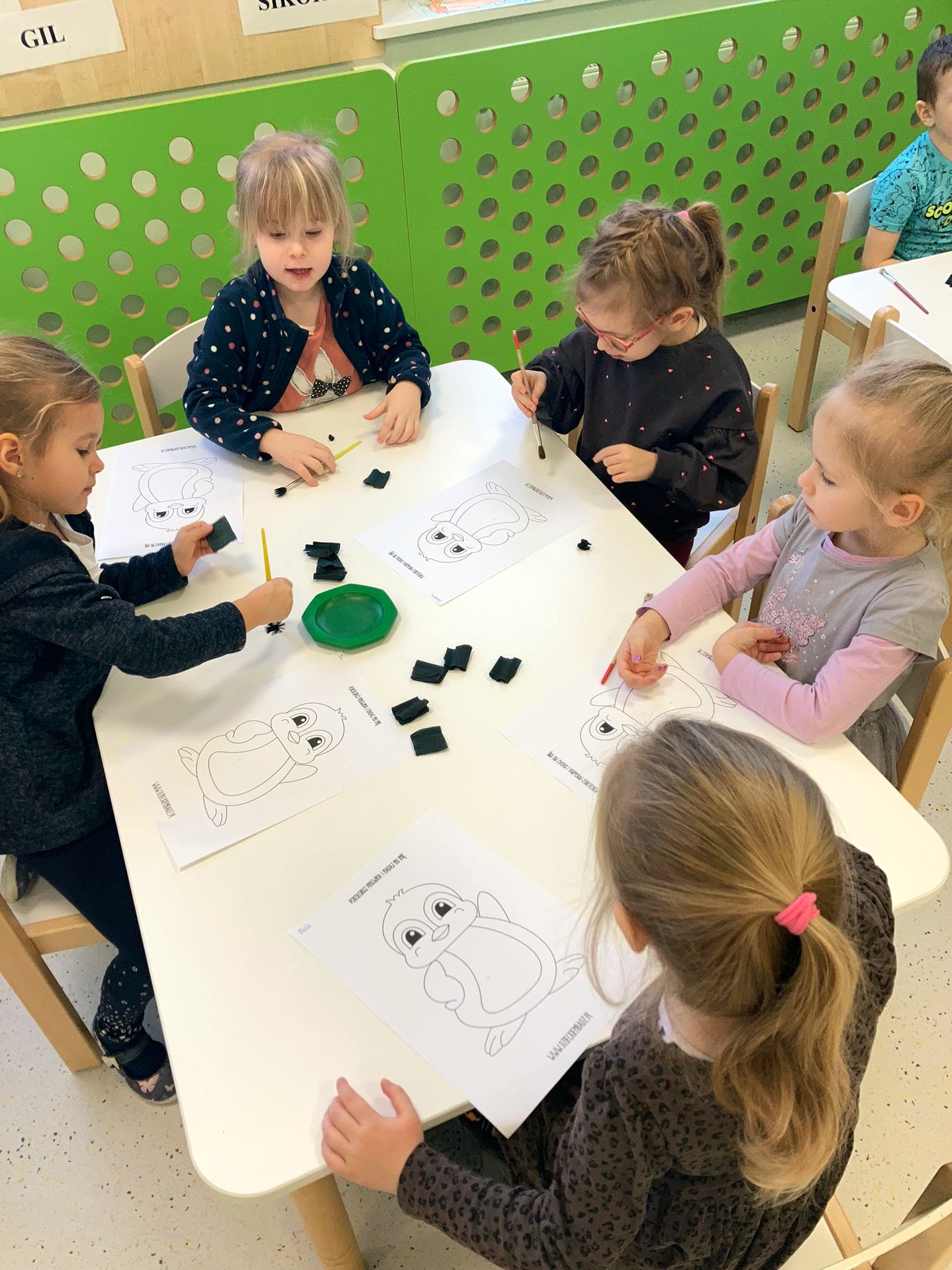 W kalendarzu to święto wypada 20 stycznia. Tego dnia dzieci w każdej grupie poznały zwyczaje i ciekawostki z życia tych sympatycznych zwierzaków. Rozwiązywały zadania matematyczne, szukały odpowiedniego cienia pingwinka, podpisywały ich postacie, szukały odpowiedniej drogi w labiryncie. Z uwagą obejrzały film, który przybliżył im życie niezwykłych ptaków zagrożonych wyginięciem. Na zakończenie dnia przedszkolaki wykonały piękne prace plastyczne przedstawiające różne gatunki tych nielotów żyjących na półkuli południowej. Dużo radości wszystkim sprawił pingwini taniec.